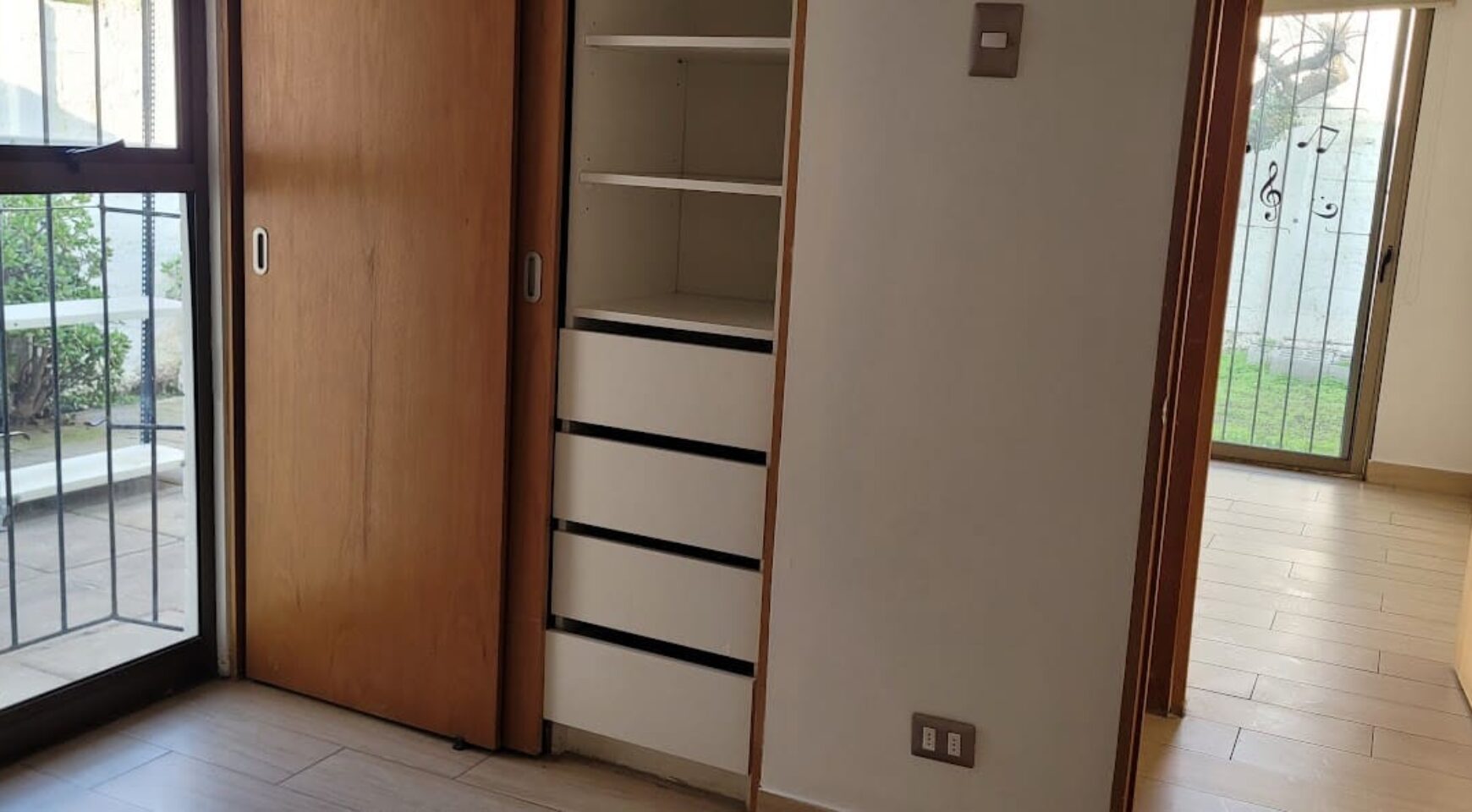 Tres dormitorios que comparten un baño y estar familiar. Dormitorio principal en suite, con salida a jardín trasero