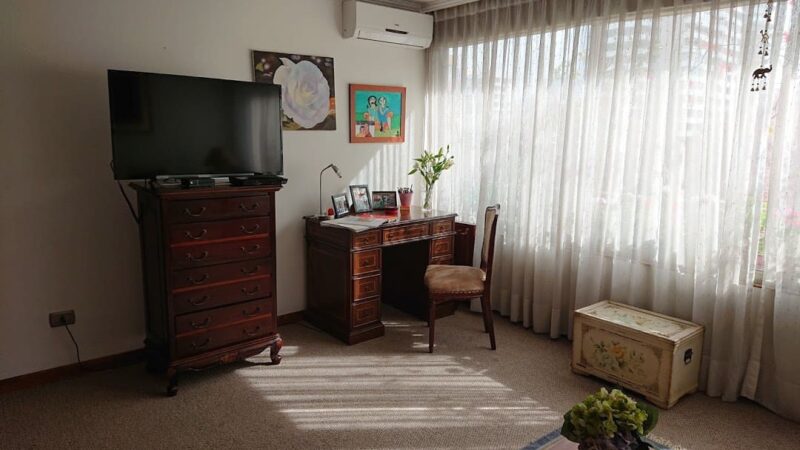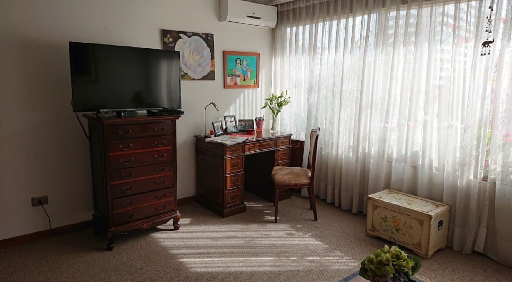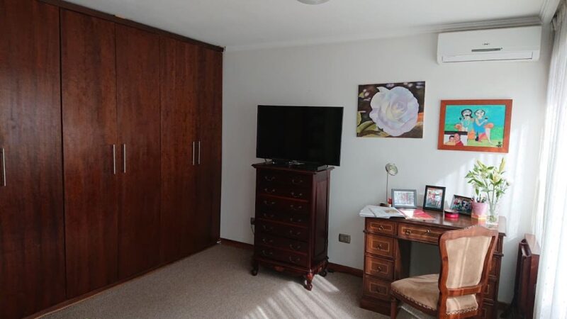 Gran dormitorio, ampliado, con aire acondicionado, baño, dormitorio principal en suite con salida a terraza y termo panel. Baño. Otros: bodega subterráneo y estacionamiento de doble tamaño, calefacción central.