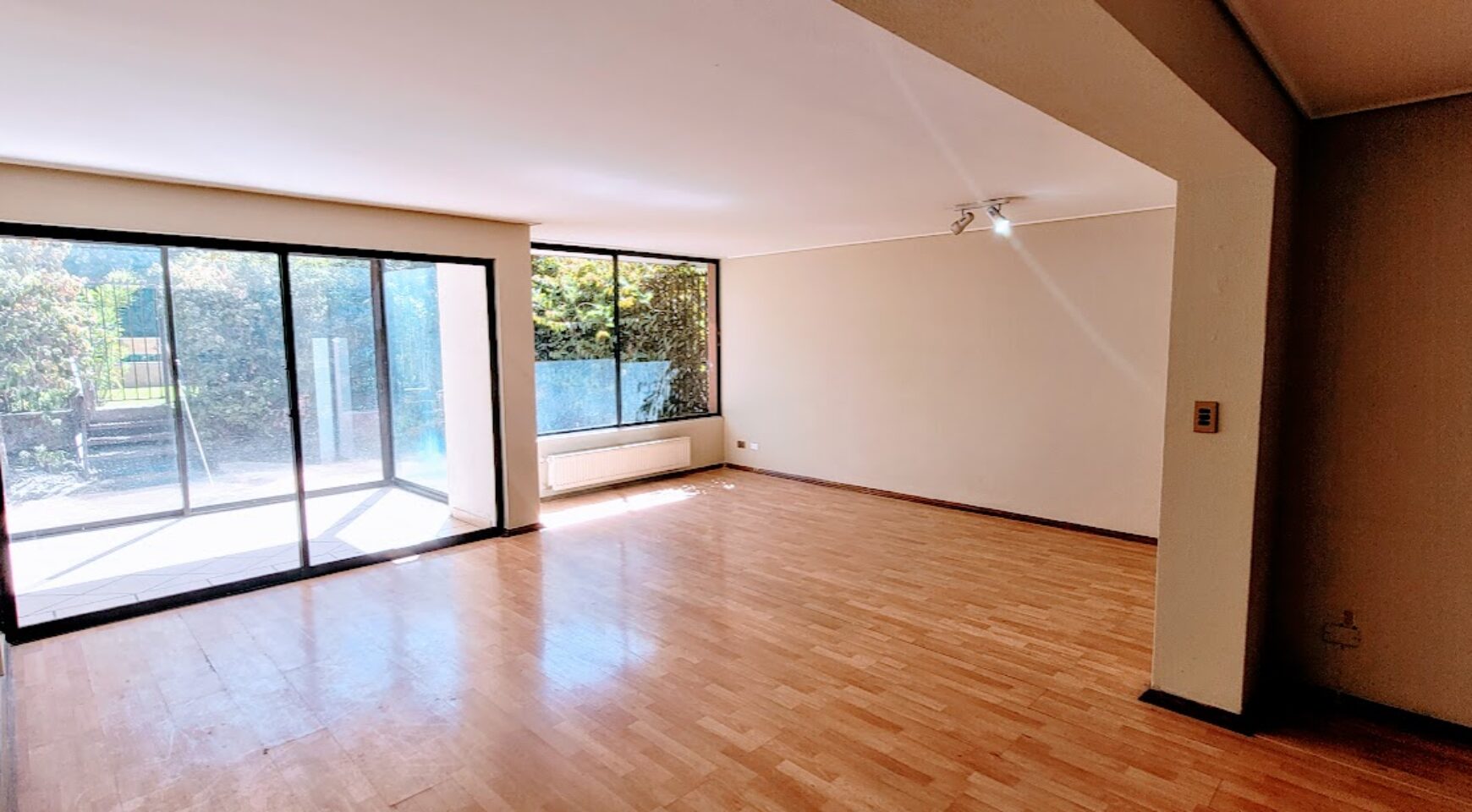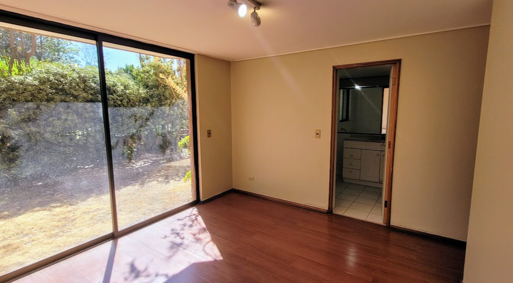 Sector de dormitorios está separados con una puerta. Dormitorio principal en suite con walking closet, además de dos dormitorios que comparten un baño. Todos los dormitorios tienen ventana termo panel y salida al Jardín del dpto.