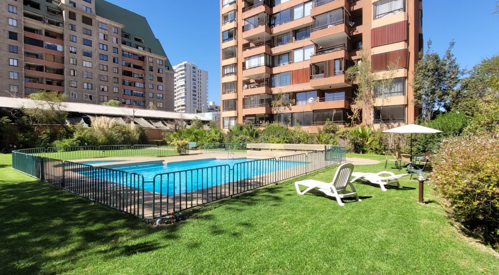 El edificio cuenta con piscina, lindos jardines, sauna, sala de evento, estacionamiento de vistas, seguridad 24 hrs