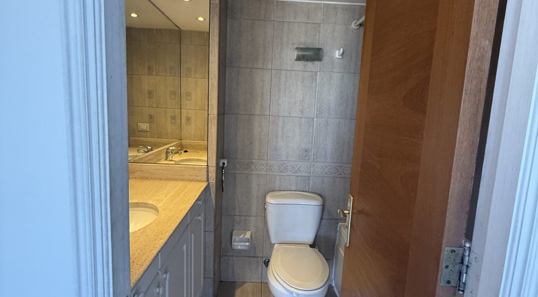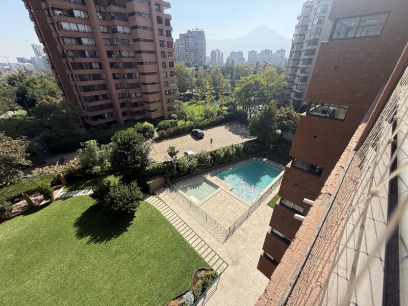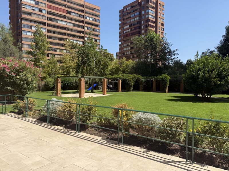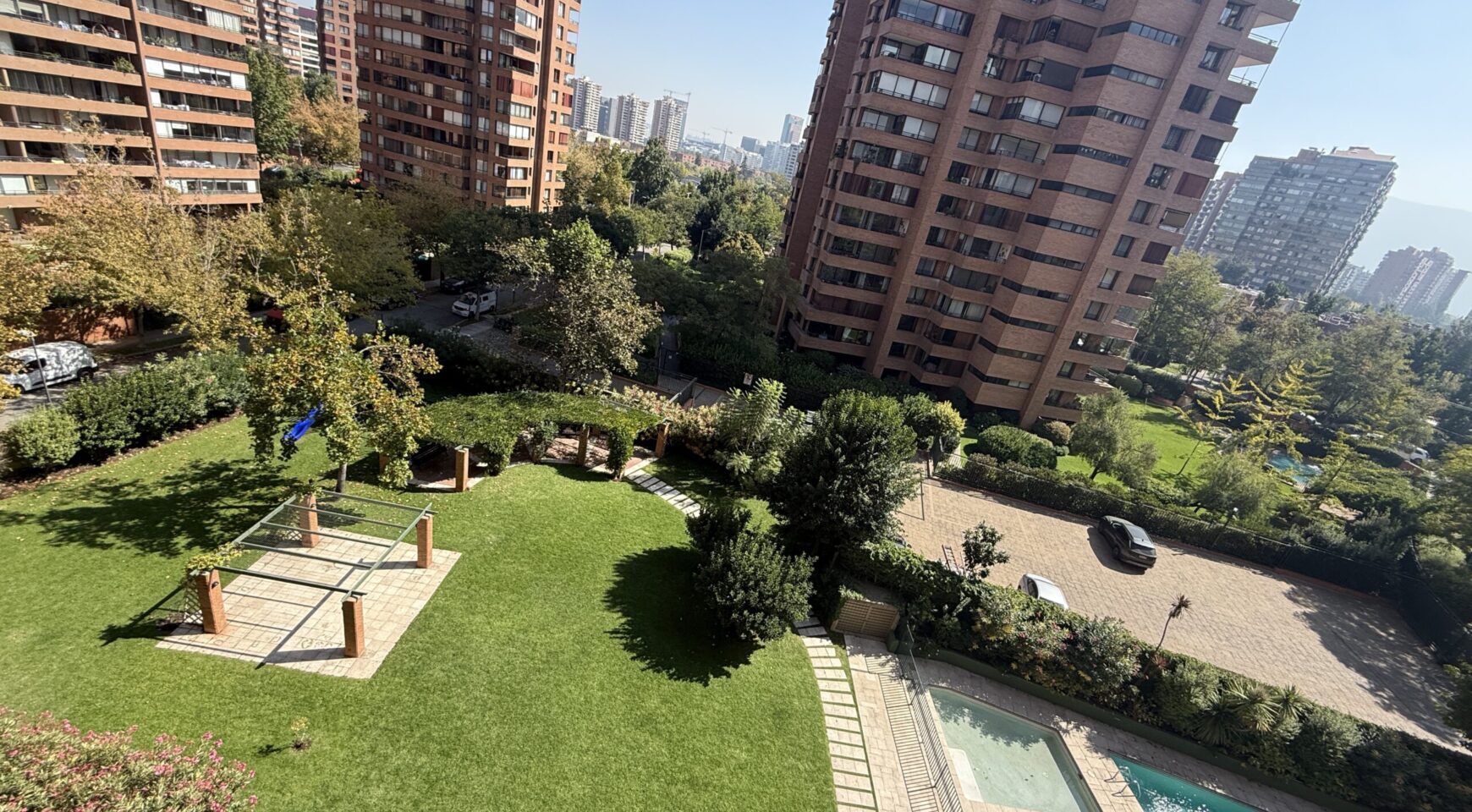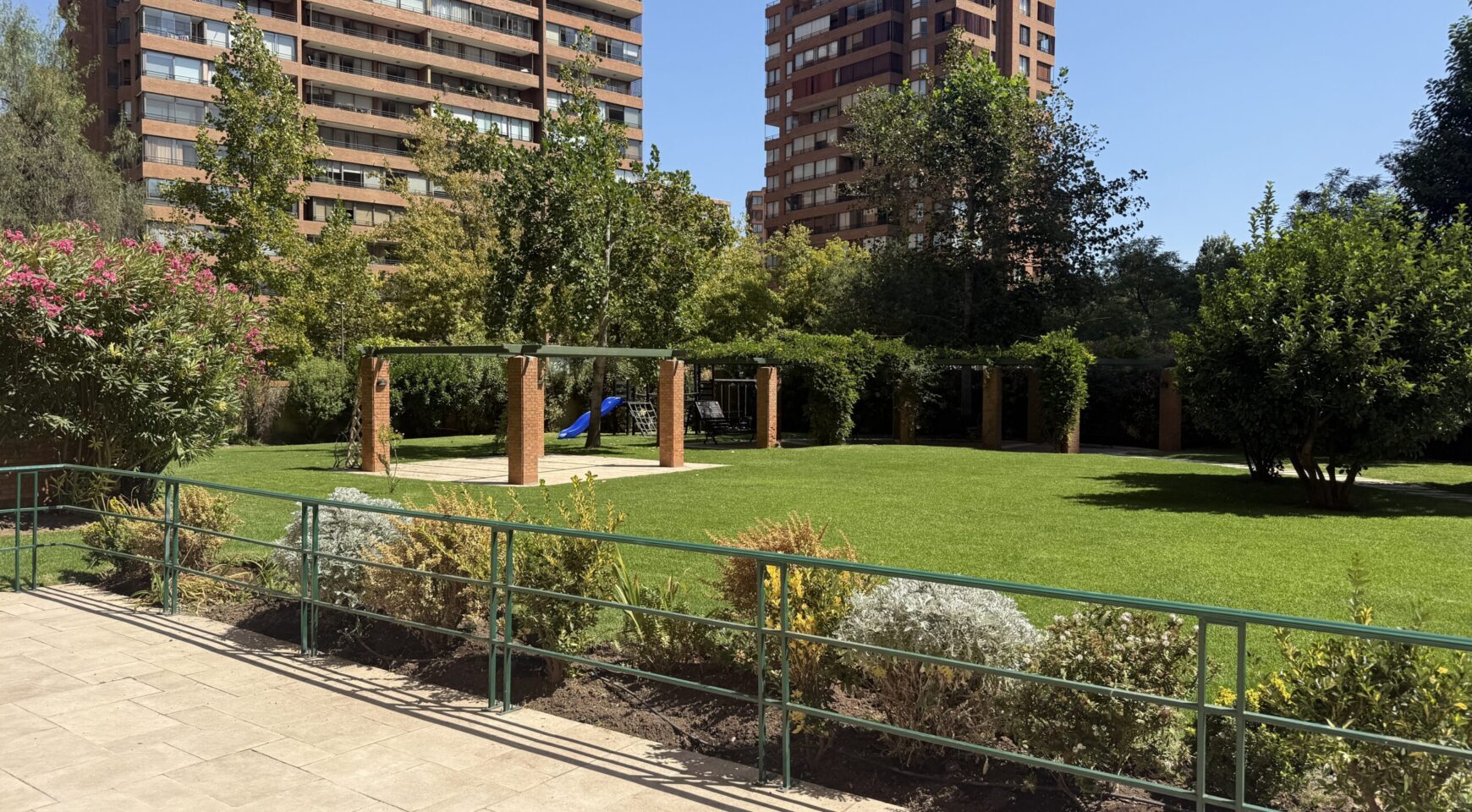 El edificio ofrece piscina, jardines, gimnasio, sala reuniones, salón multiuso; seguridad 24 horas, en un tranquilo sector residencial de Las Condes.