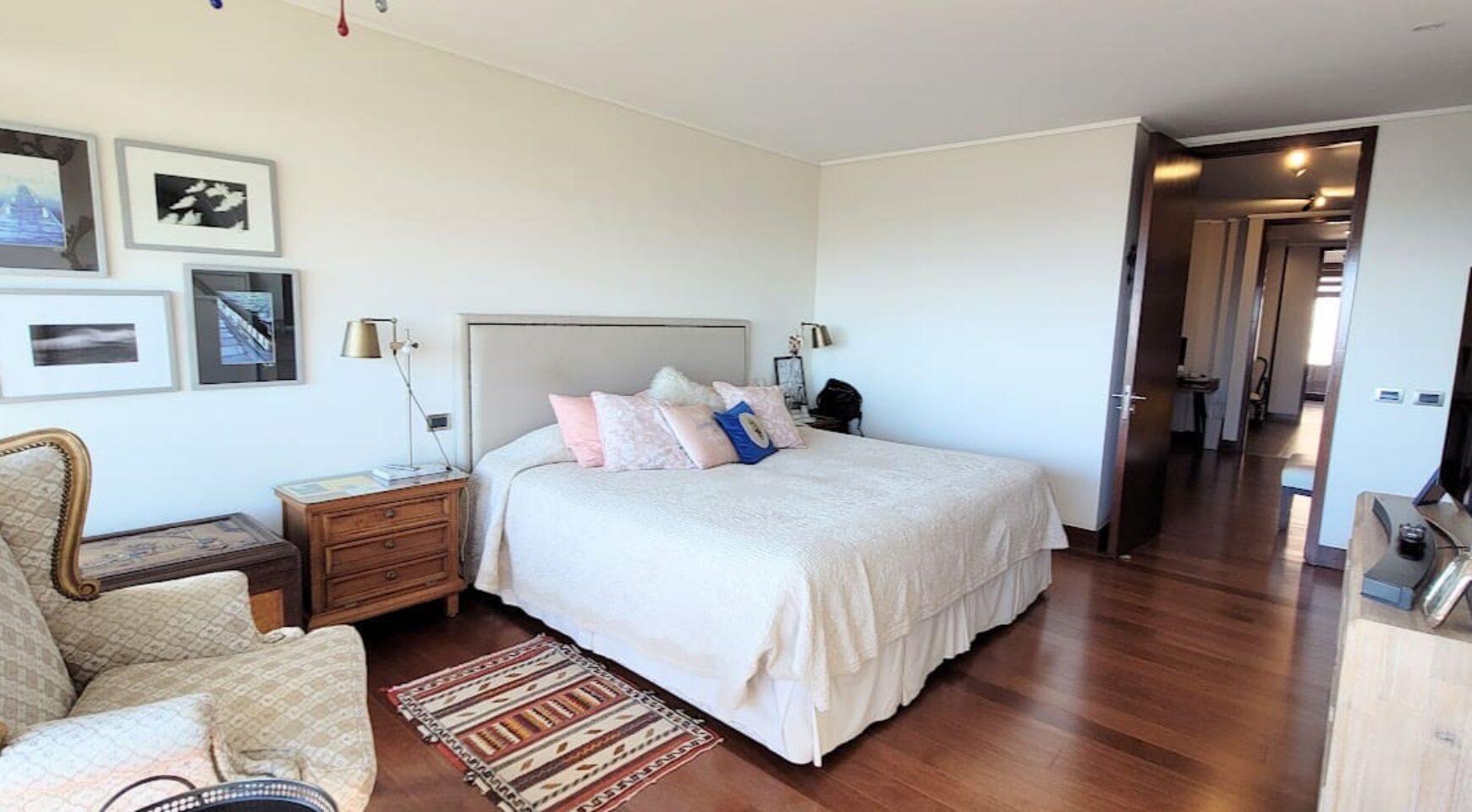 Distribución. Hall de estada, baño de visita, Dos dormitorios en suite independientes con salida a terraza, el principal con walking closet. Estar familiar