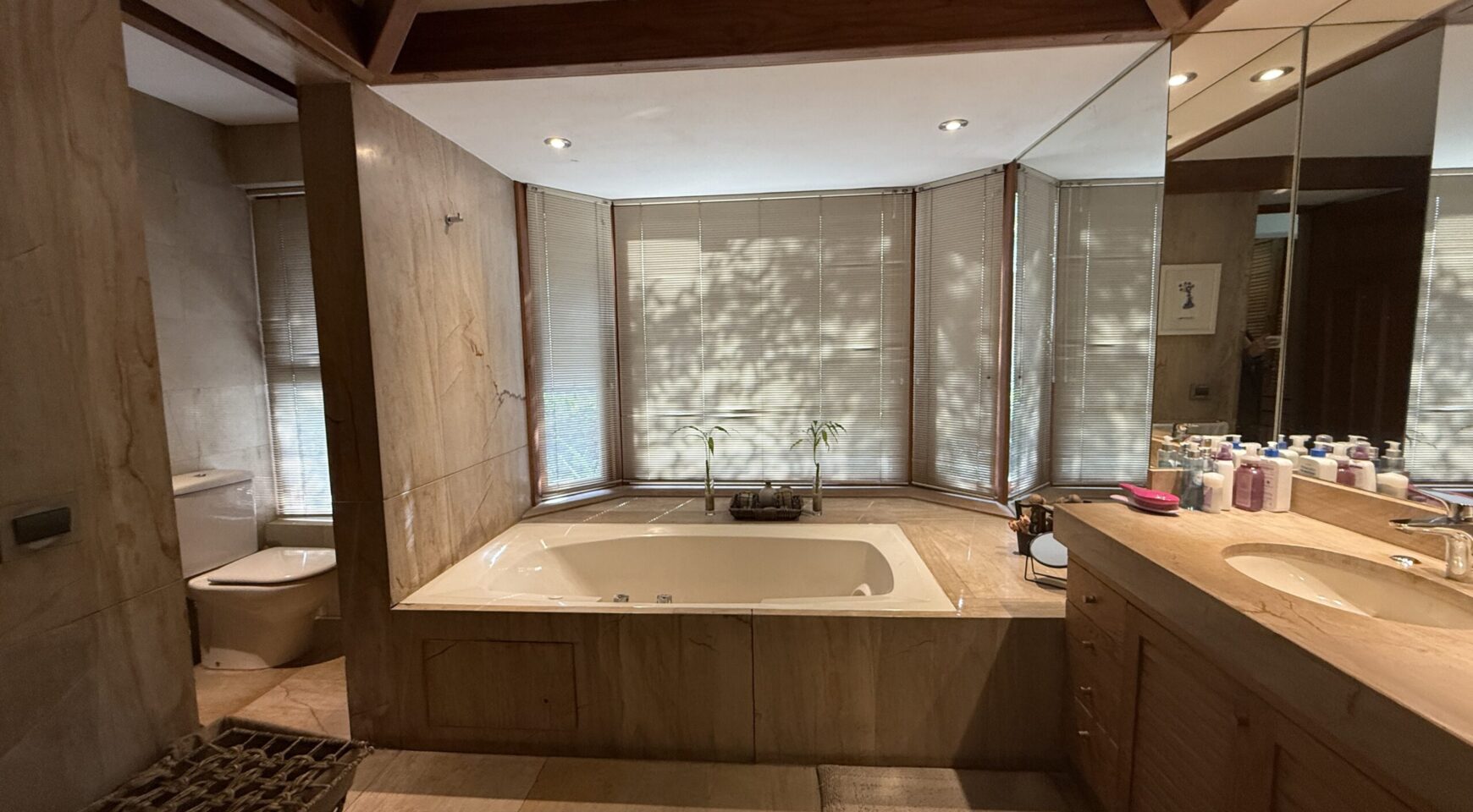 Segundo Piso: sala de estar, escritorio, dormitorio principal en suite, baño, Jacuzzi, amplios closets.