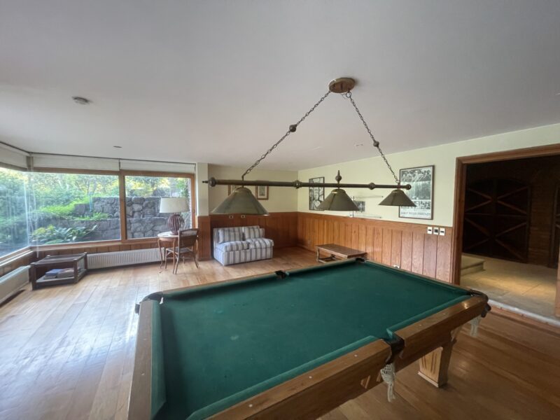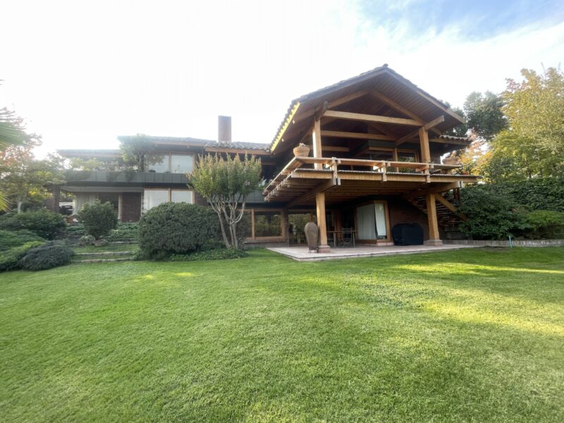 Hall de entrada, baño de visita, amplio living, comedor, terraza techada con vista a canchas de golf; 6 dormitorios, 4 baños, principal en suite, escritorio, taller, sala de estar, más otra sala con salida a terraza/jardín; cava, sauna, bodegas, cocina con comedor de diario, patio de servicio, 2 dormitorios de servicio y baño.