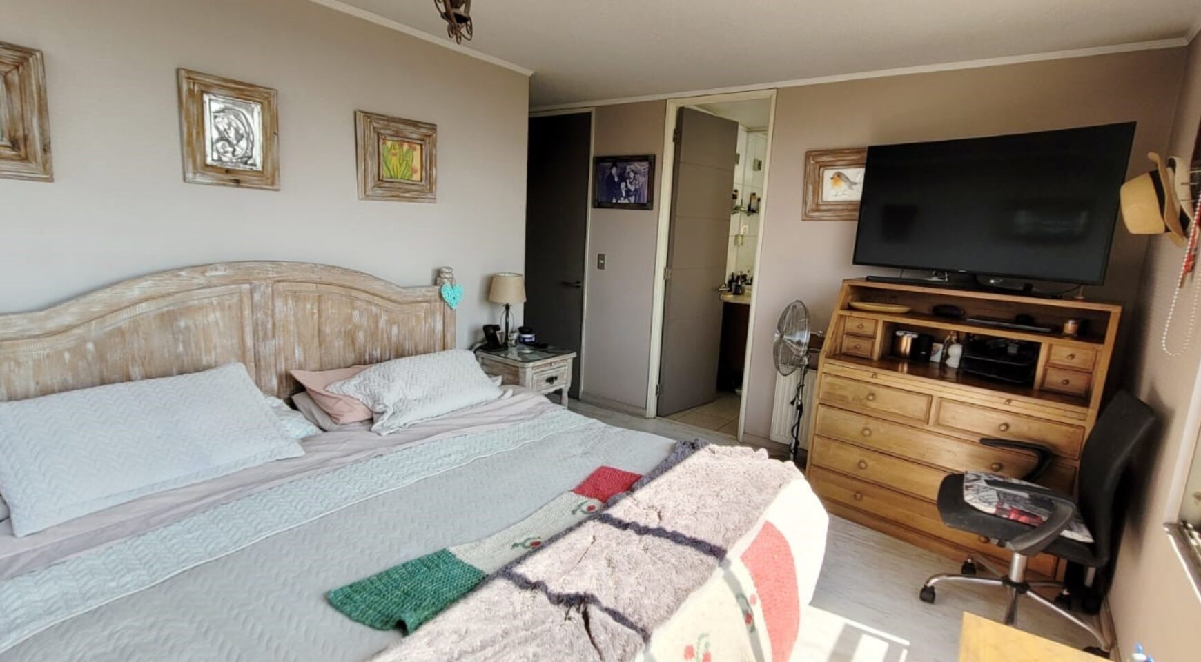 Escritorio, dos dormitorios que comparten un baño, dormitorio principal en suite. Dos estacionamientos subterráneos y bodega.