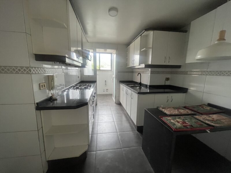Hall de entrada, amplio living comedor, vista totalmente despejada; 3 dormitorios 2 baños, principal en suite. Cocina con comedor de diario, cubierta de granito, Loggia, dormitorio de servicios completo