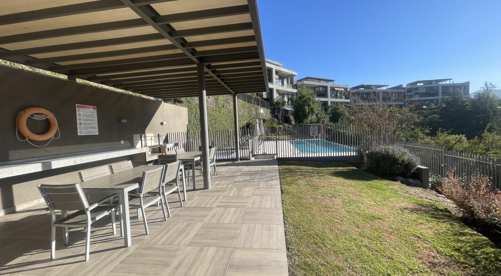 Edificio cuenta con seguridad las 24 hrs, estacionamiento de visitas, quinchos y piscina.