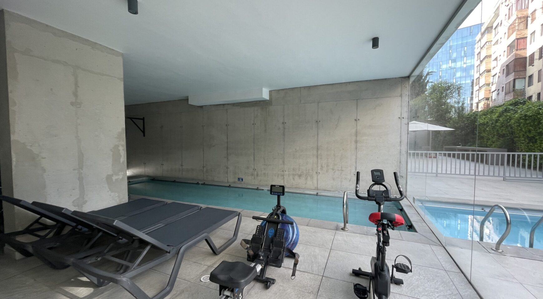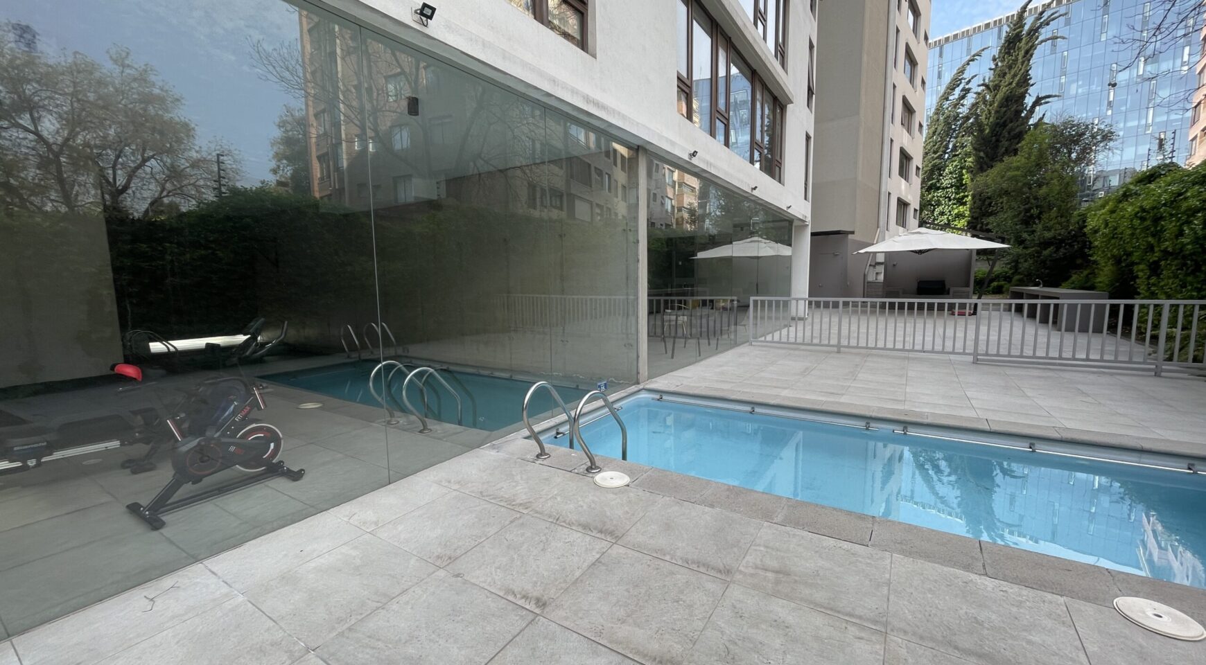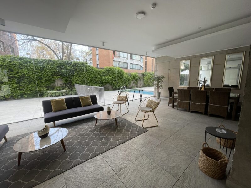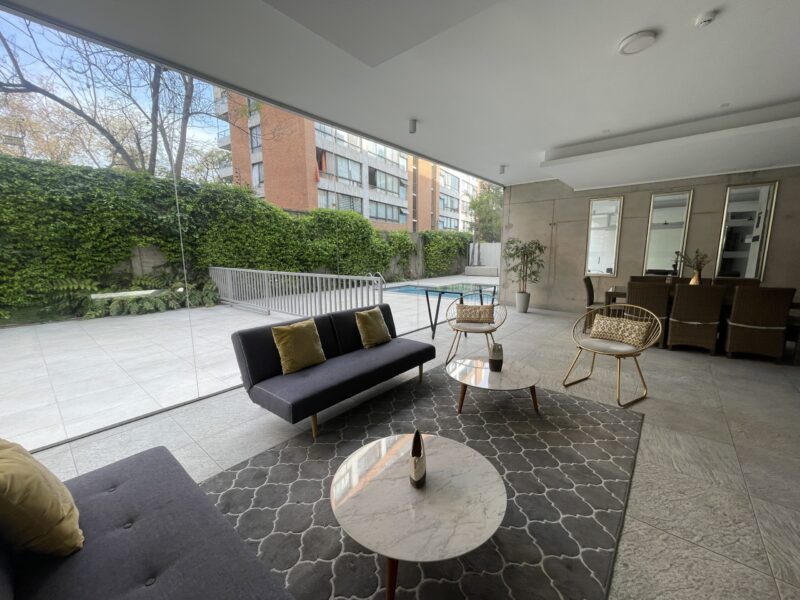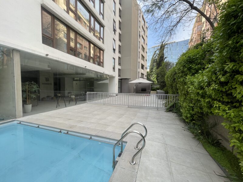Edificio cuenta con seguridad 24 hrs, gimnasio, sala multiuso, piscina al aire libre, quincho, piscina climatizada.