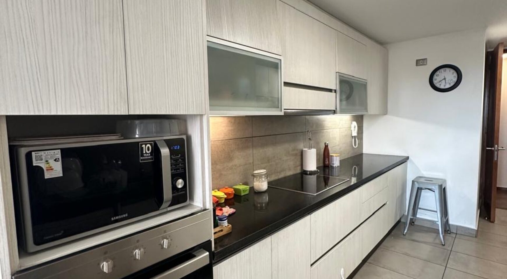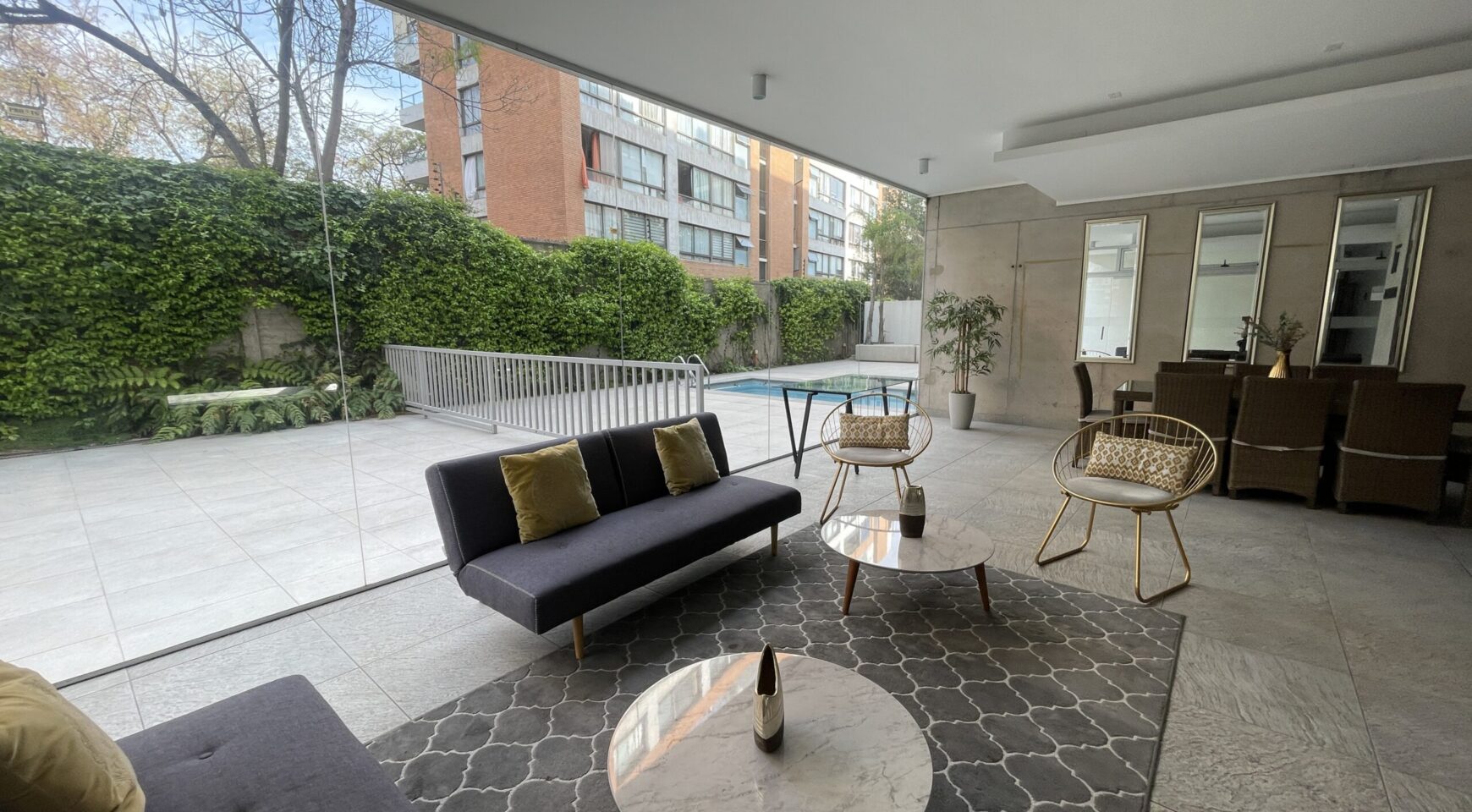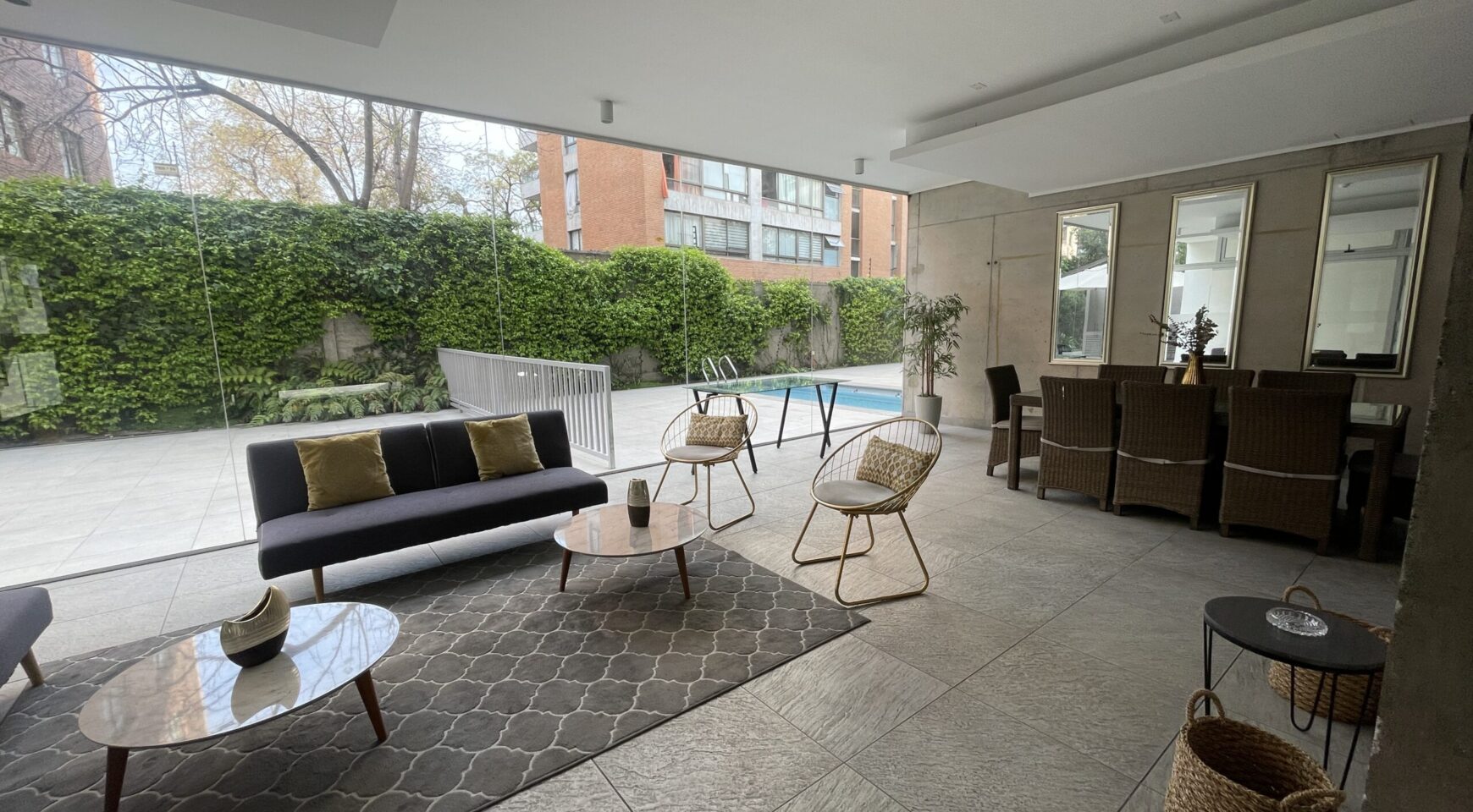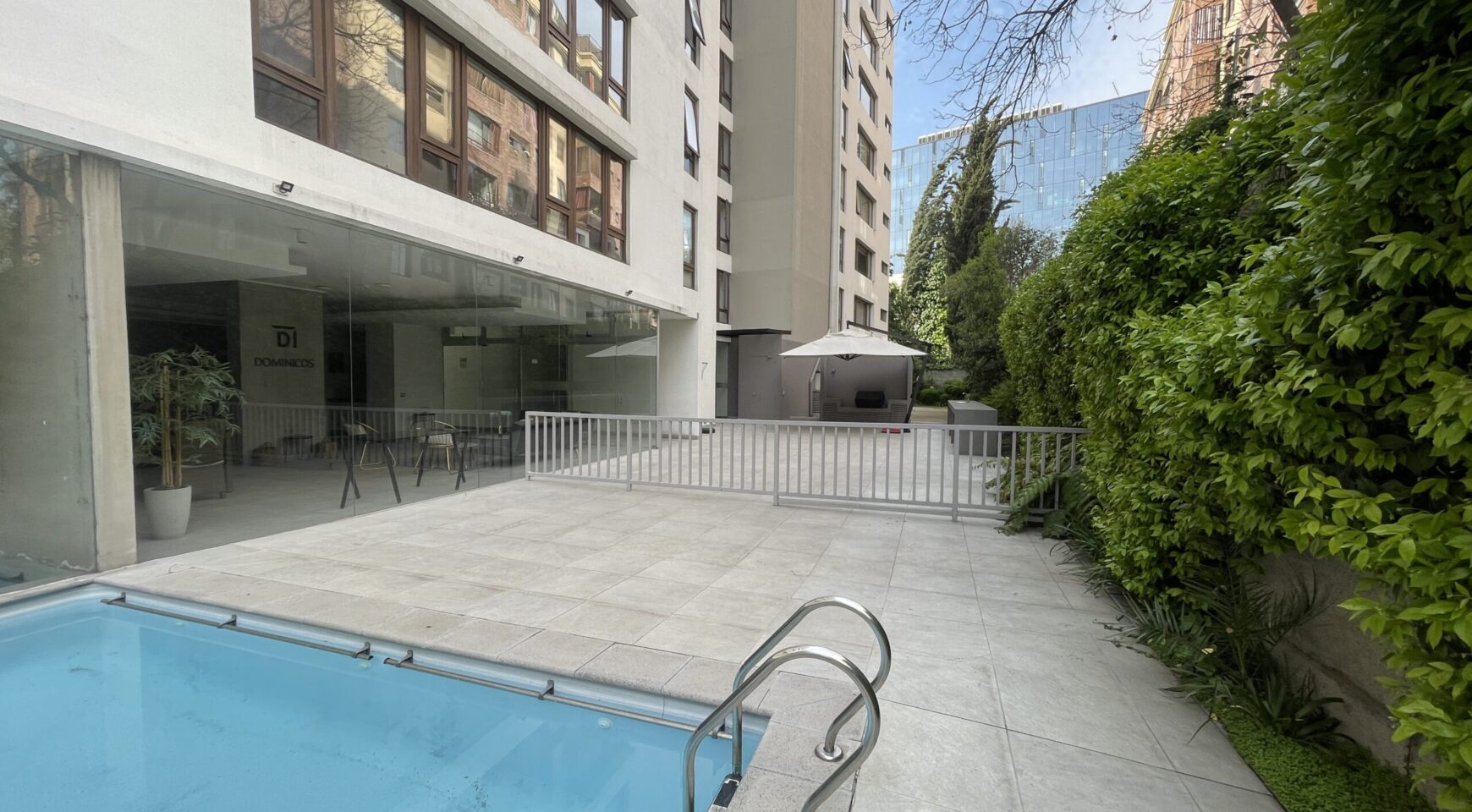 Edificio cuenta con seguridad 24 hrs, gimnasio, sala multiuso, piscina al aire libre, quincho, piscina climatizada.