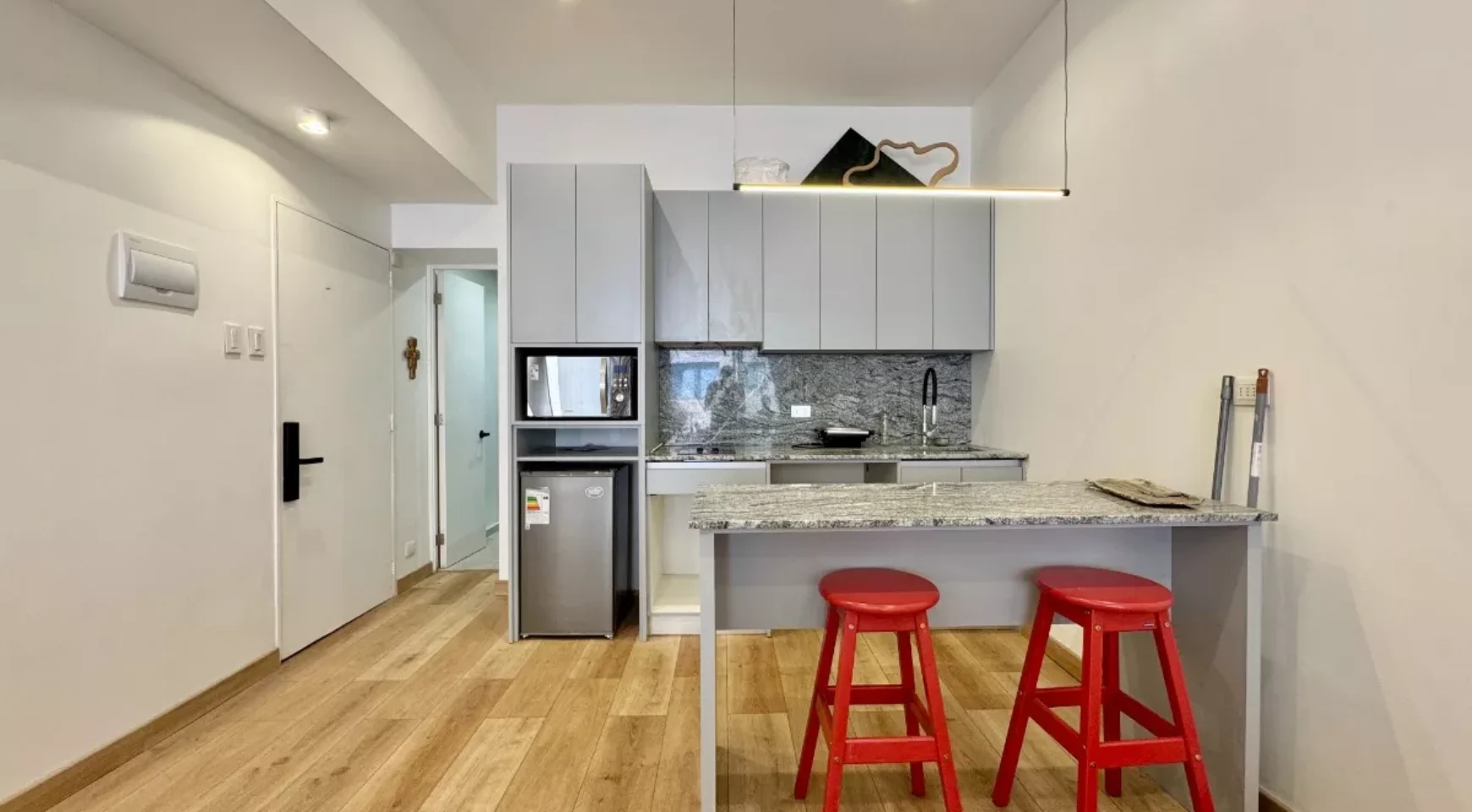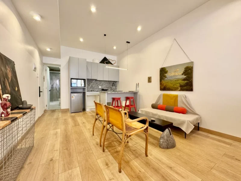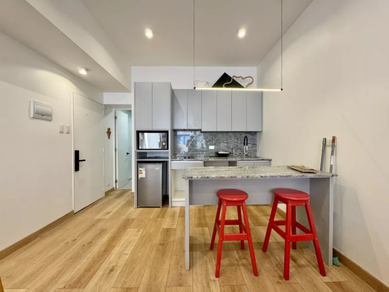 Todo muy moderno y cómoda distribución. Living comedor con cocina americana, dormitorio enterregado con aire acondicionado-