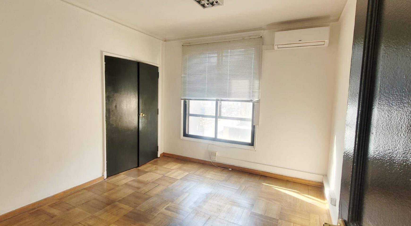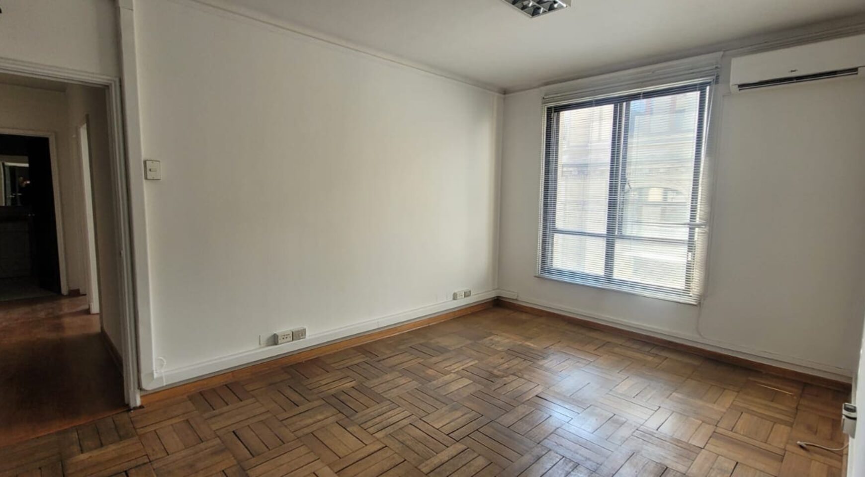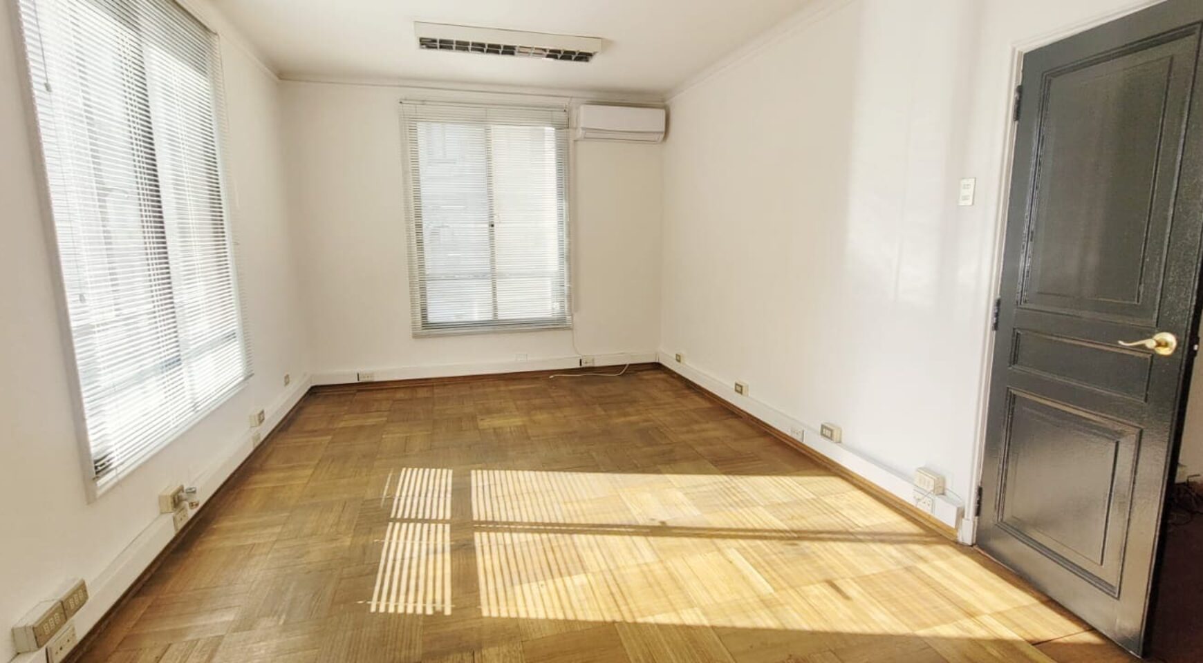 Distribución: Hall de entrada, dos amplios privados unidos por una puerta (ambos con aire acondicionado), tercer privado mas pequeño. 4to privado con baño. 5to y 6to privados amplios, con archiveros o closet y aire acondicionado. 7mo privado es bastante amplio (para varias estaciones de trabajo y con baño privado, además de archivero o closet
