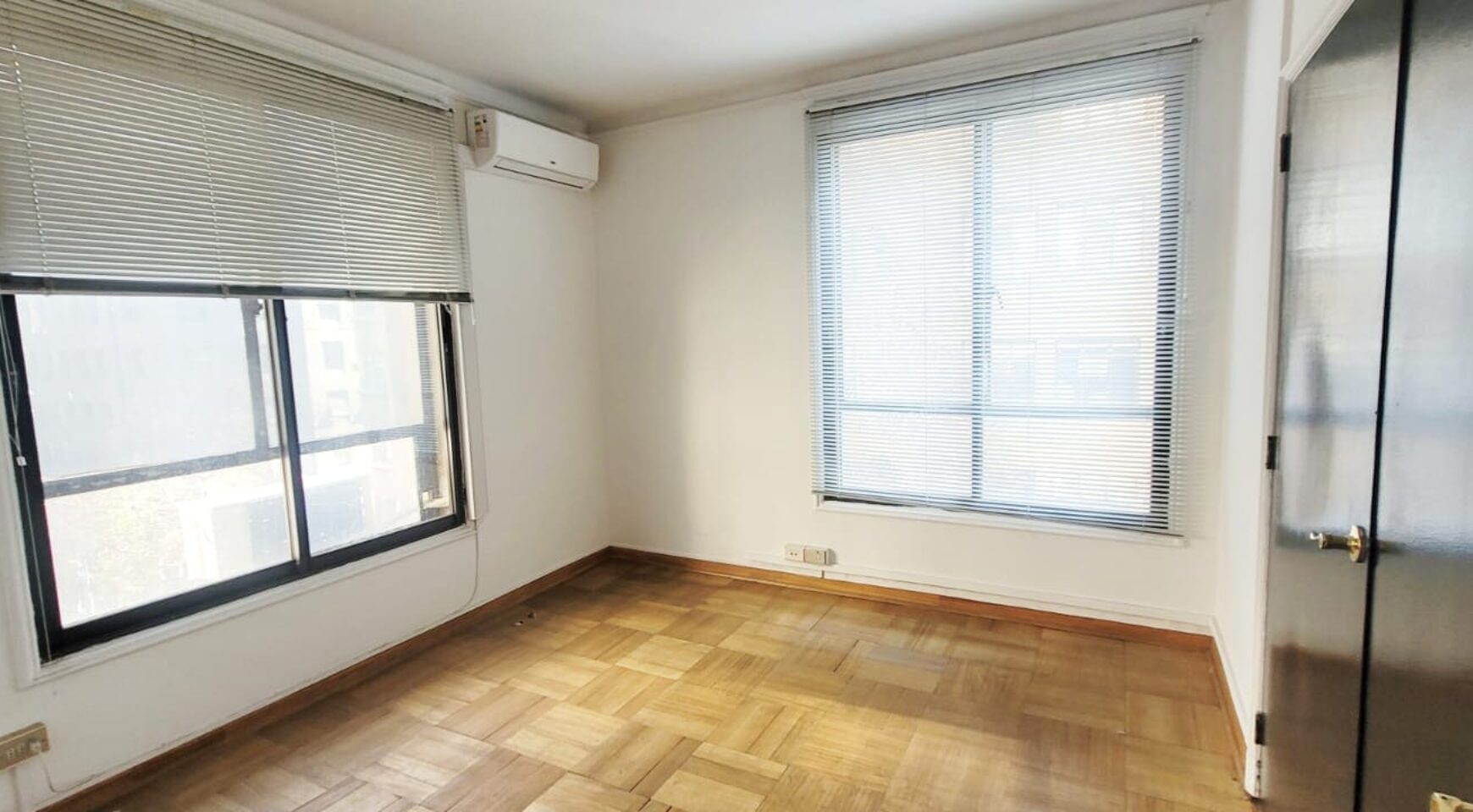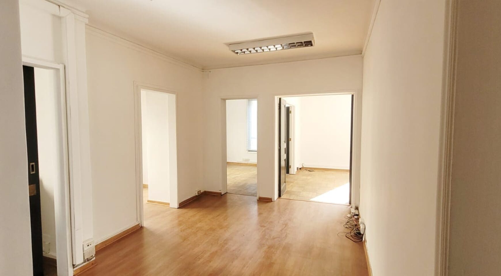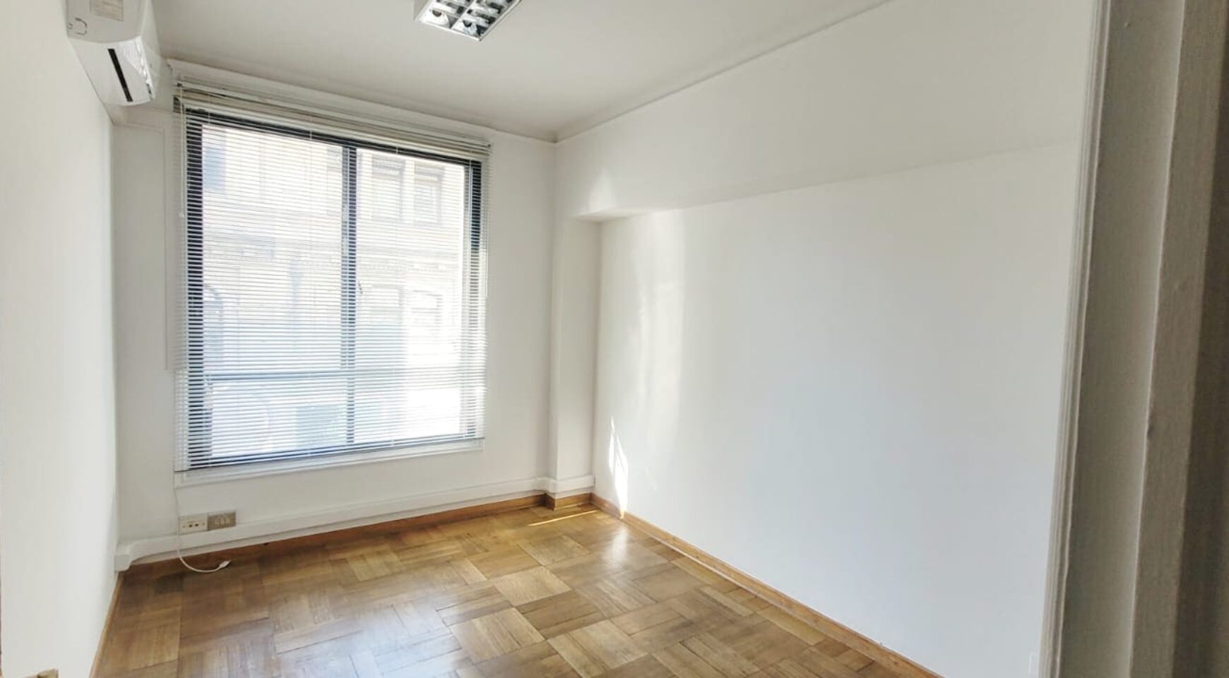 Distribución: Hall de entrada, dos amplios privados unidos por una puerta (ambos con aire acondicionado), tercer privado mas pequeño. 4to privado con baño. 5to y 6to privados amplios, con archiveros o closet y aire acondicionado. 7mo privado es bastante amplio (para varias estaciones de trabajo y con baño privado, además de archivero o closet