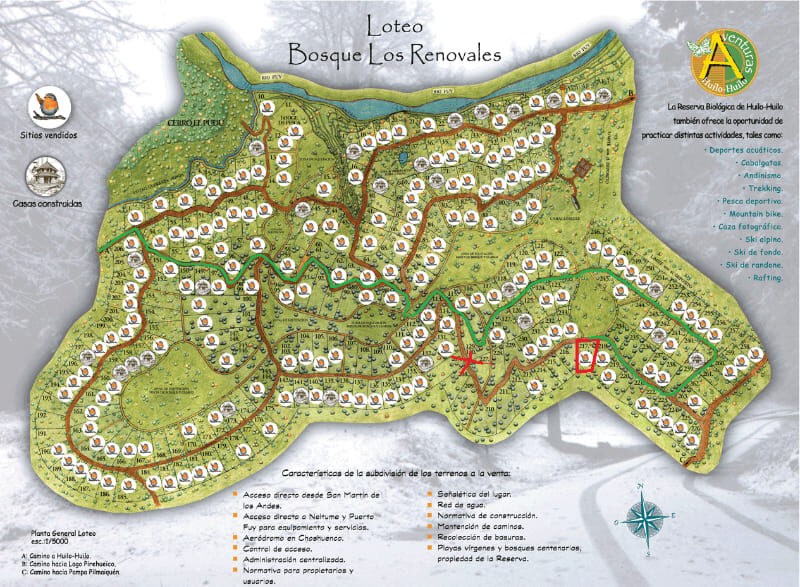 Sitio en loteo Los Renovales de Huilo Huilo, son 5.920 mts2 de terreno, con una linda vegetación, es un lugar maravilloso con playas vírgenes y bosques centenarios, con una gran Plusvalía. cuenta con accesos controlados, Red de agua, recolección de basura, mantención de caminos.